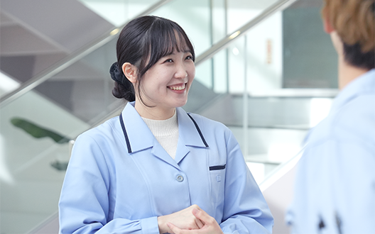 短期大学の商学科で簿記やマーケティング、プログラミングについて学ぶ。さらに心理学や法学などさまざまな分野にも興味を持ち知識を得た。長く安心して働ける環境の企業で働きたいとの思いで就職活動をおこなう。社員を大事にした福利厚生や、地元である上田市で働ける部分に魅力に感じ、入社を決意。現在は富士山工場にて、SANUPS製品やSANMOTION製品のうち、UPSやサーボアンプを生産する生産部に勤務。